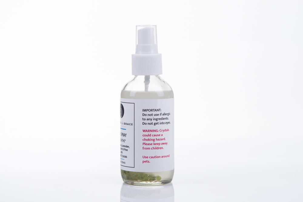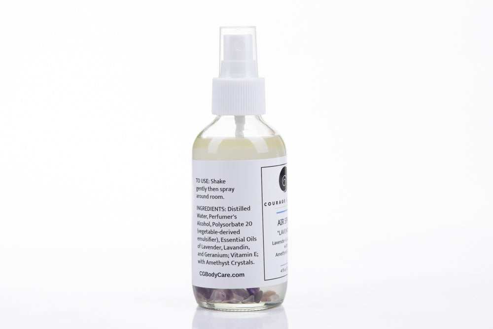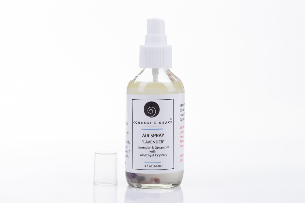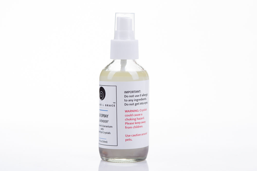 Amethyst is considered the healing stone. These crystals in the spray enhance the calming presence of the gentle lavender scent. Picture yourself in a lavender field in Provence and breathe in the relaxing scent.