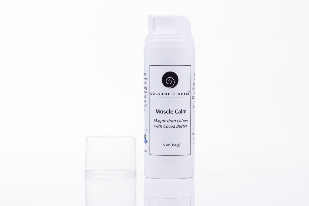 At Courage & Grace, we use high quality ingredients to bring you our organic magnesium lotion. Muscle Calm lotion features Authentic Zechstein Magnesium Oil, which we import from Holland. This ensures pure, highly concentrated magnesium, giving your body what it needs. This will help you stay balanced and cramp-free.